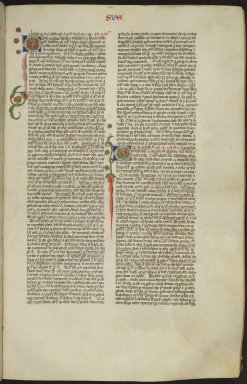 Commentary on Joshua: the biblical text is underlined in red ink. Decorative initials introduce the next two chapters. The text is written in double columns of 68 lines.