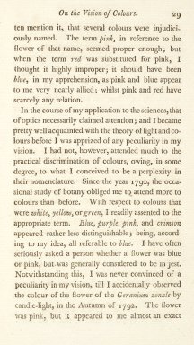 Paper on 'Extraordinary Facts relating to the Vision of Colours: with observations' by John Dalton. Read October 31st 1794 by John Dalton to the Manchester Literary and Philosophical Society.